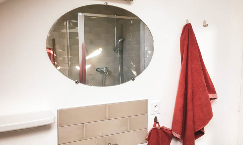 Le gîte dispose d’une salle de douches au 1er étage et d’une salle de bains au rez-de-chaussée.