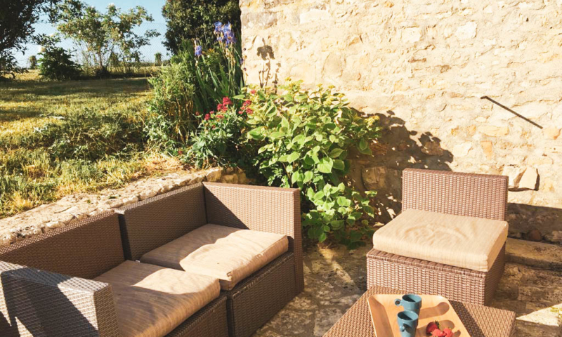 De l’autre côté du gîte se trouve une cour intérieure privative entourée de granges au charme indéniable des fermes d’antan.